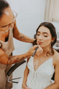 A diferenciação entre maquiagem social e maquiagem de noiva é clara para ela — e essencial para quem deseja fazer escolhas conscientes. A social tem foco no look e dura o tempo necessário para algumas horas. Já a maquiagem de noiva exige preparo, planejamento, técnica específica, produtos adequados e atenção minuciosa ao acabamento, especialmente para foto e vídeo, onde cada detalhe importa. É pensar não só no agora, mas no que ficará eternizado.